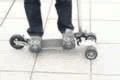 3.十分に勢いがついたら素早く軸足を斜め前へ向けます。 こうすることによって的確にボードをコントロールできます/font>